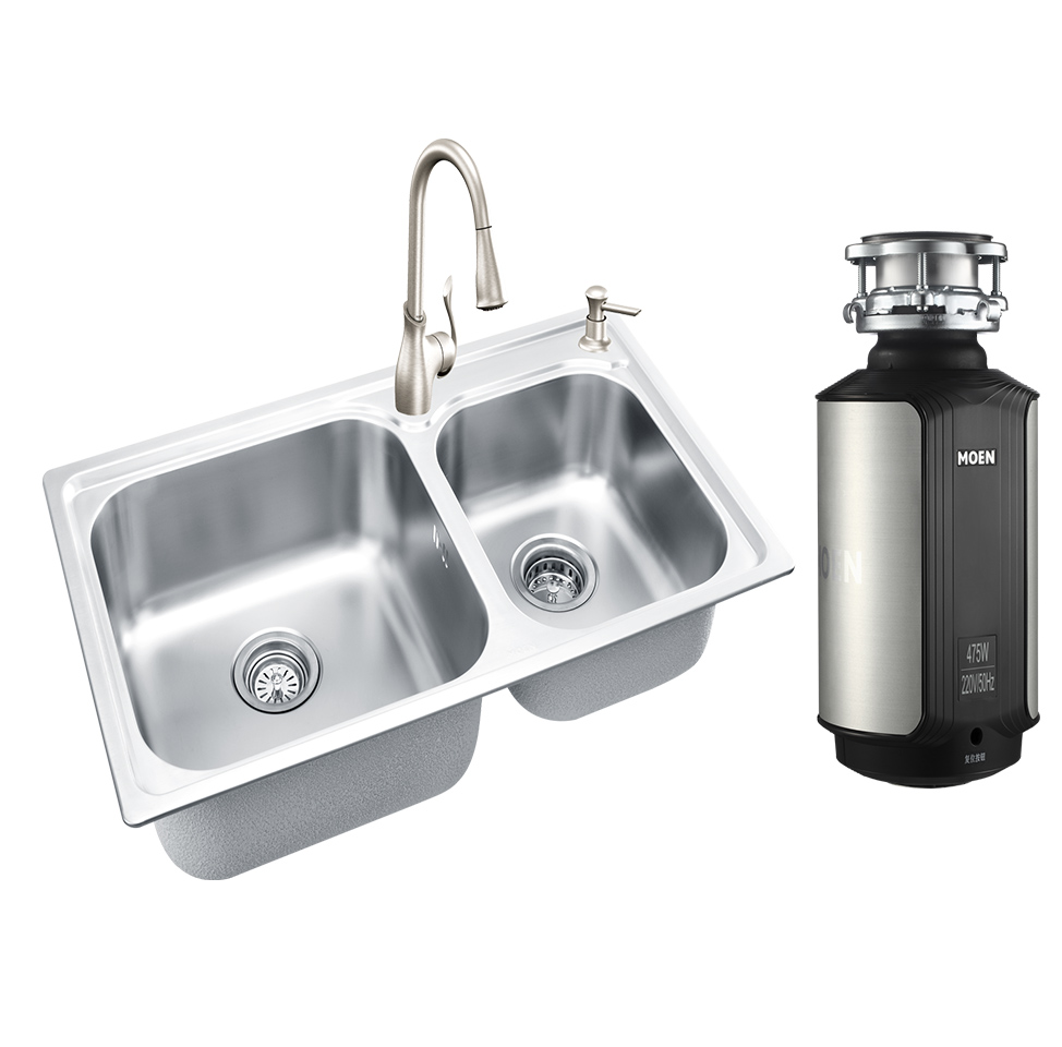 【摩恩卫浴】菜盆+龙头套餐+拉圾处理器